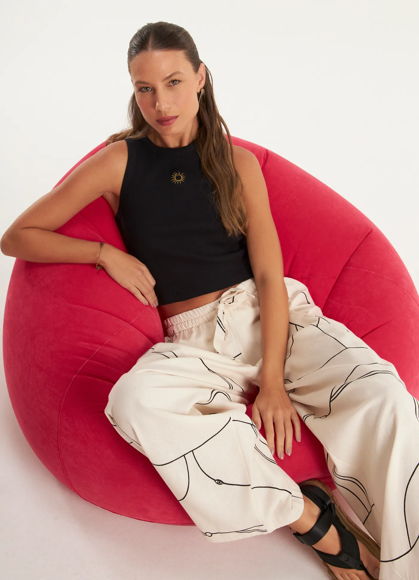 Regata cropped rib bordado sol vermelho