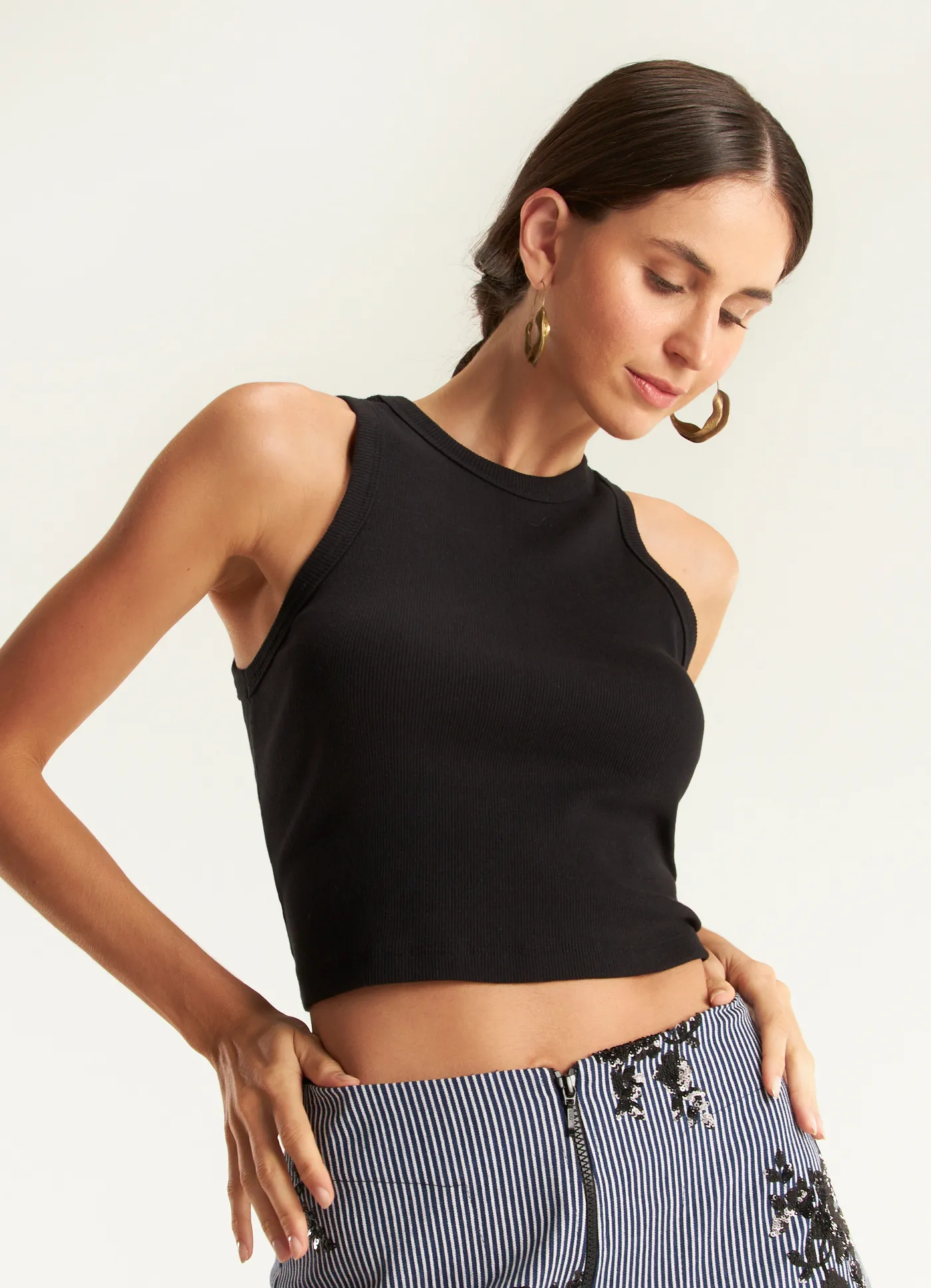 Regata cropped ribana com elastano preto