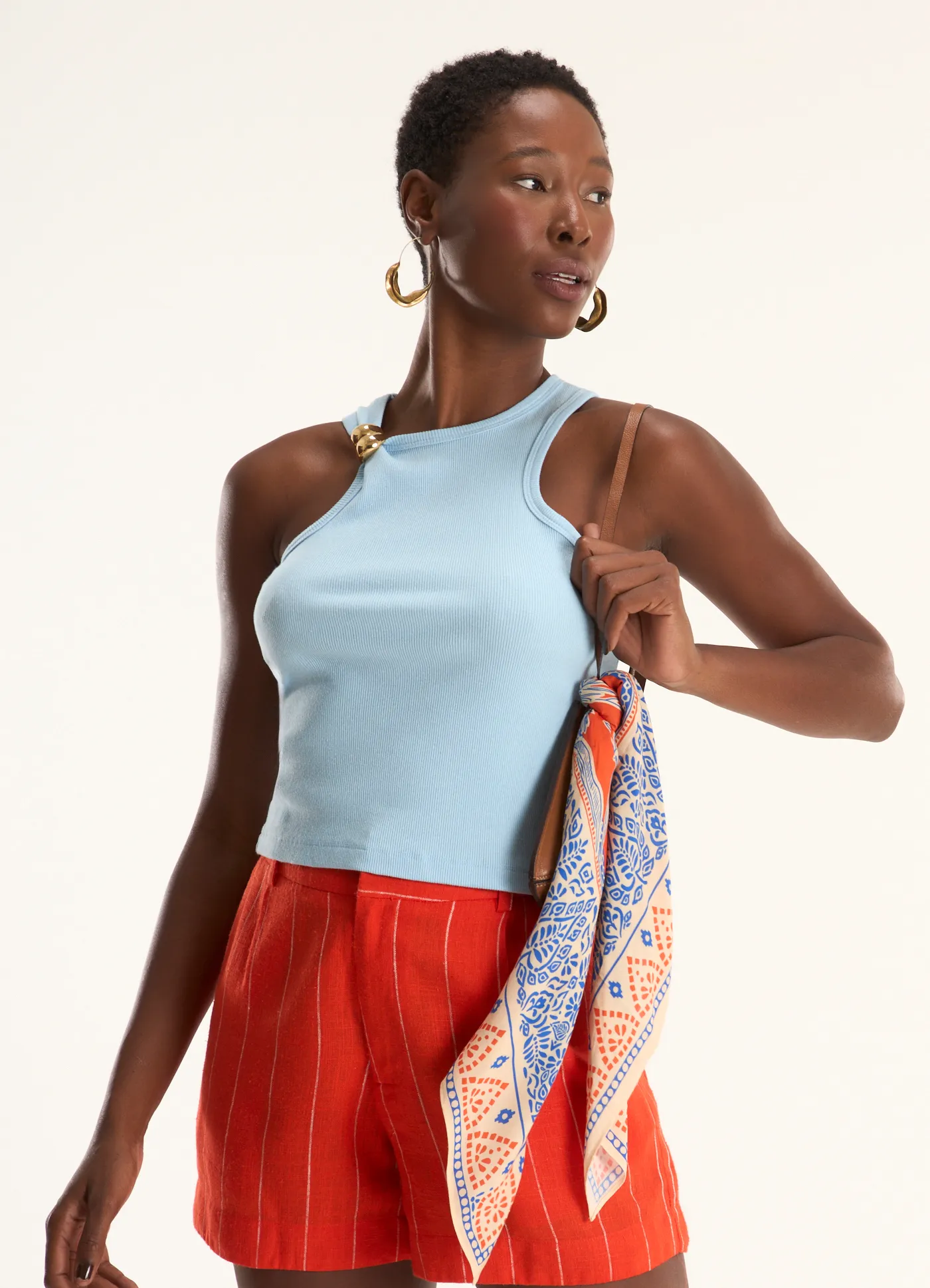 Top faixa tricô lab azul marinho