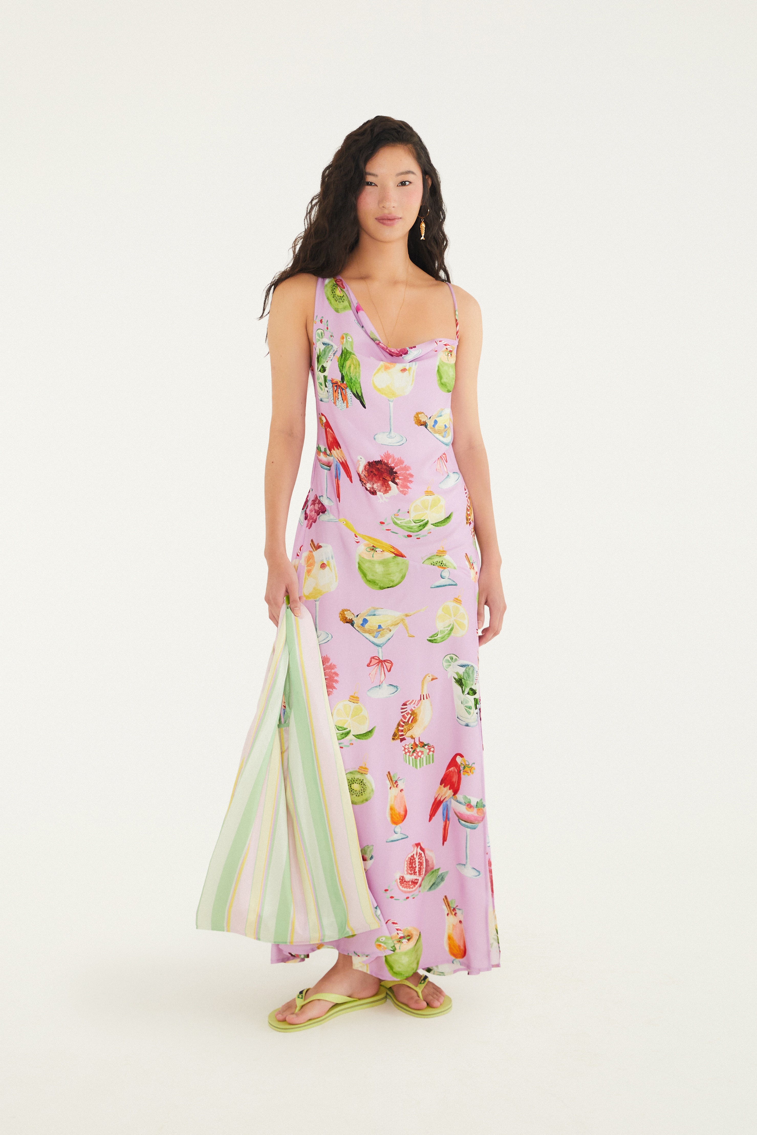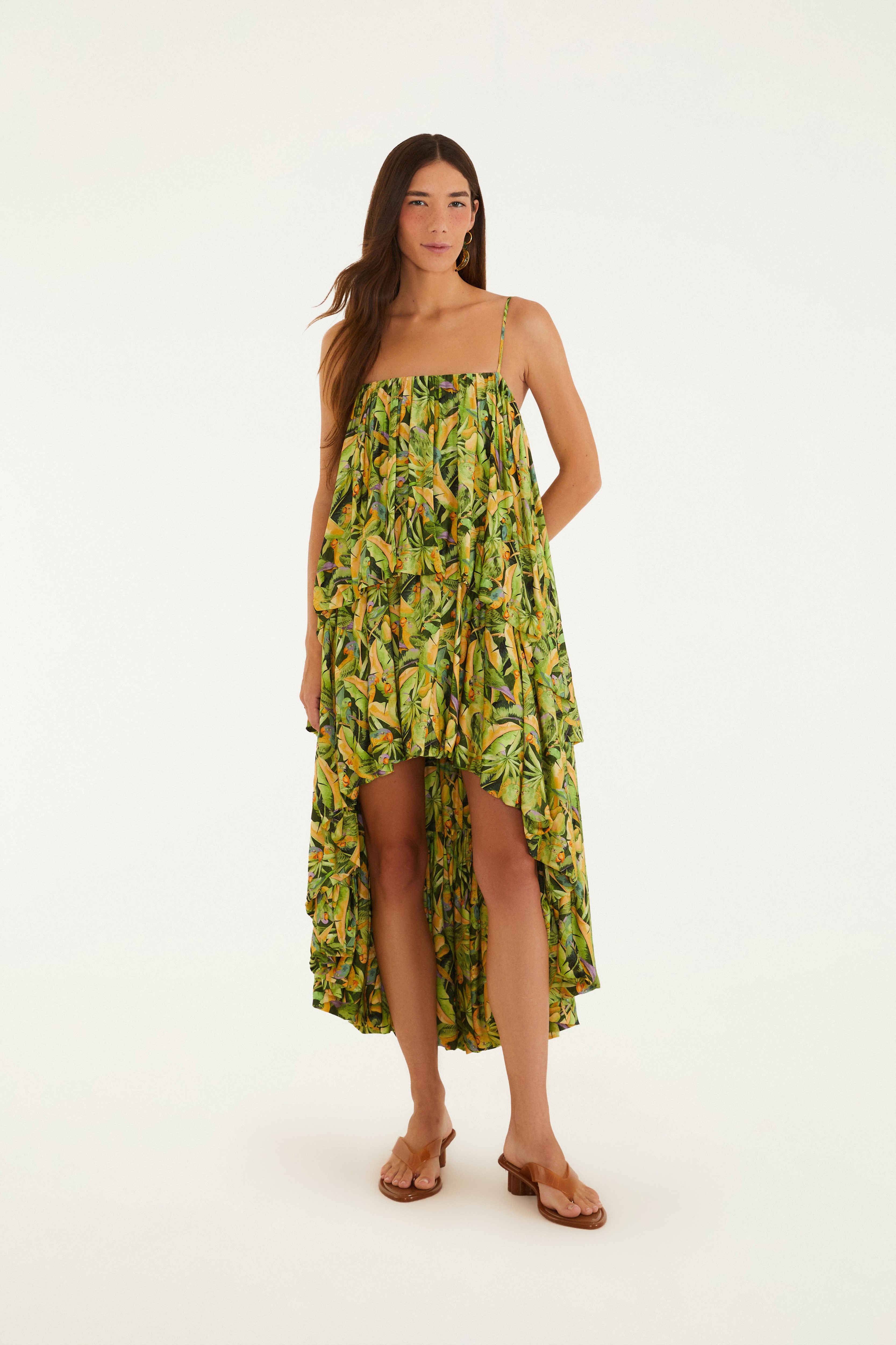 Vestido Mullet Estampado Floresta De Passarinho