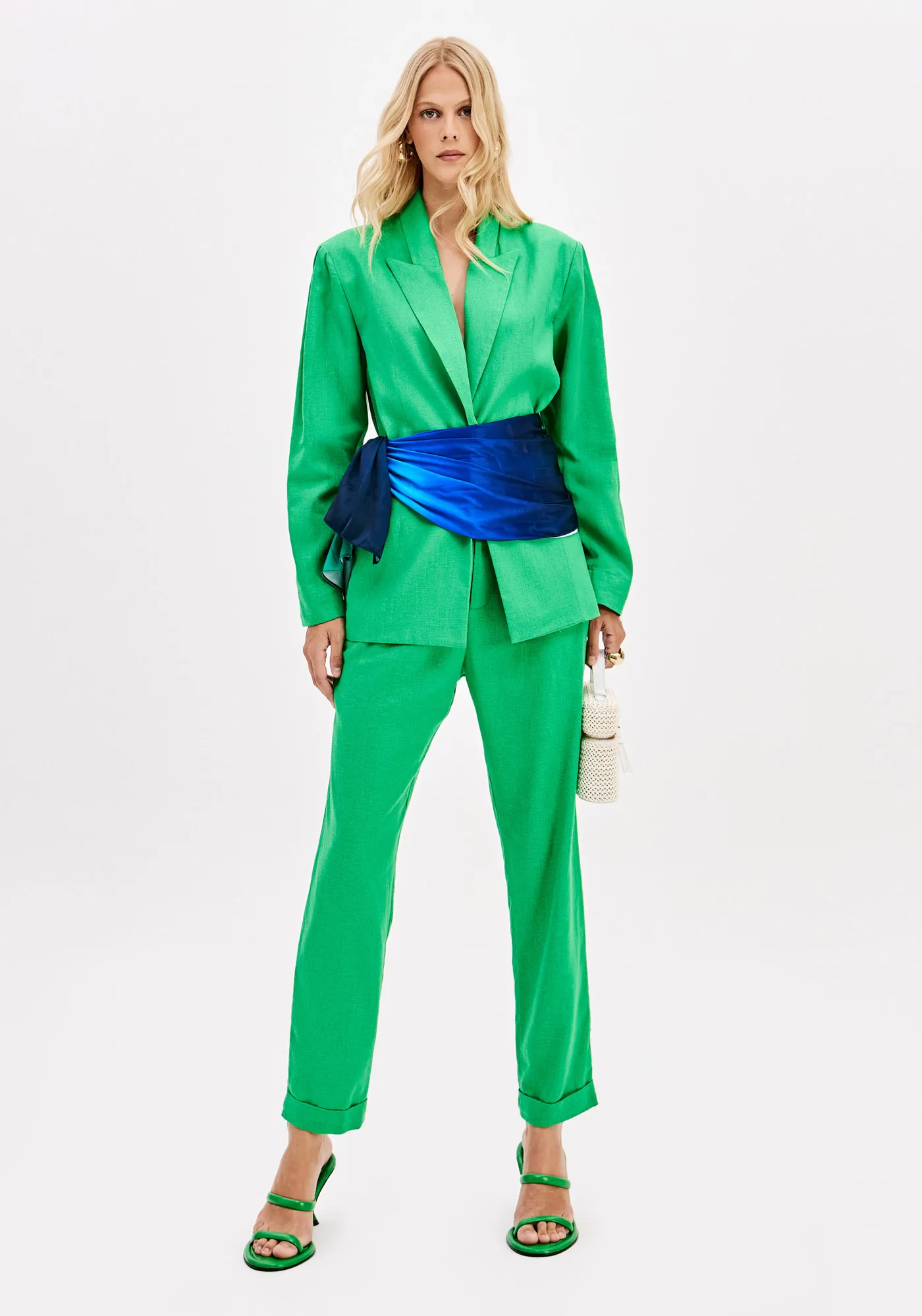 Blazer Alongado Com Linho E Botão