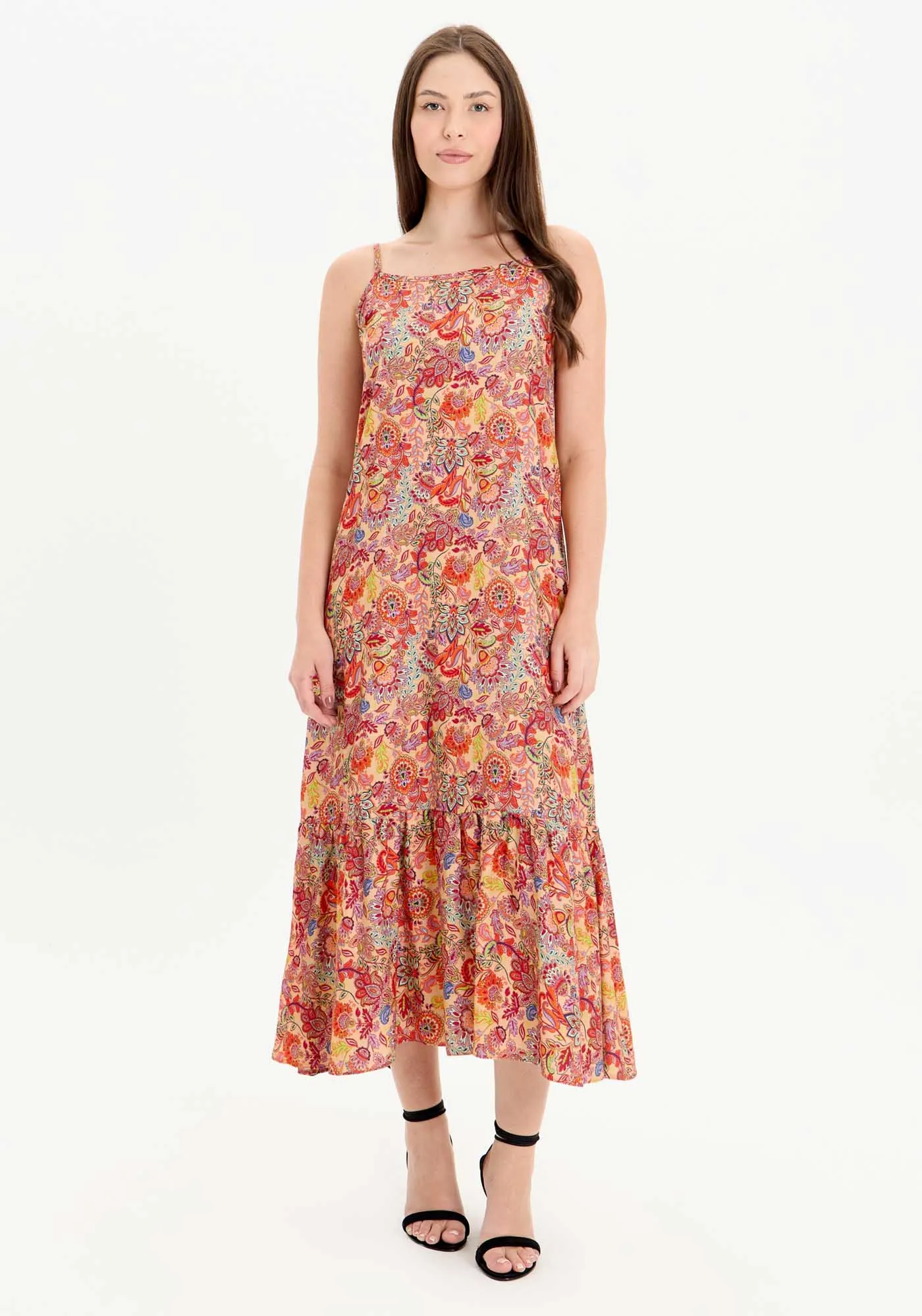 Vestido Estampado De Alças Com Babado Na Barra