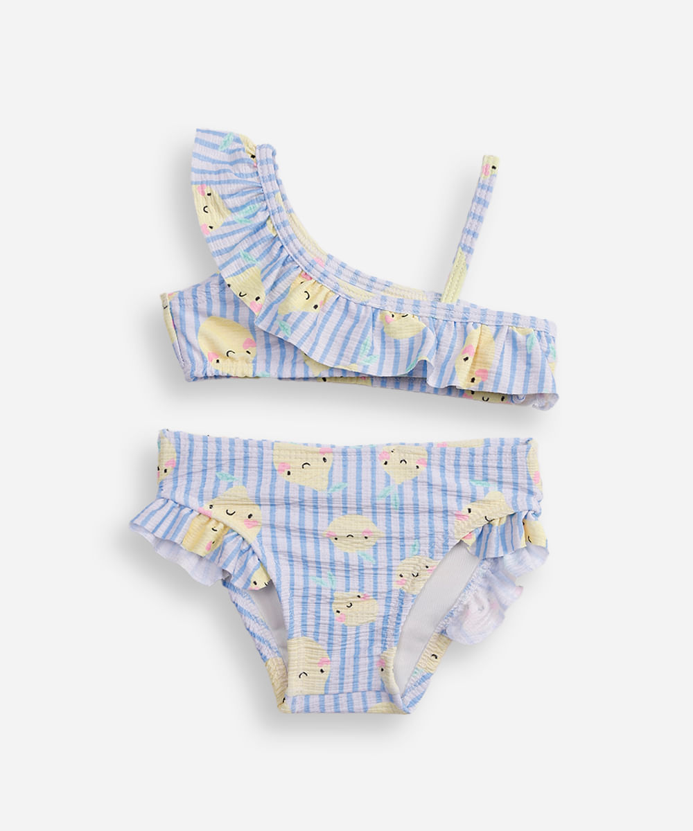 biquíni infantil com babado listrado off white