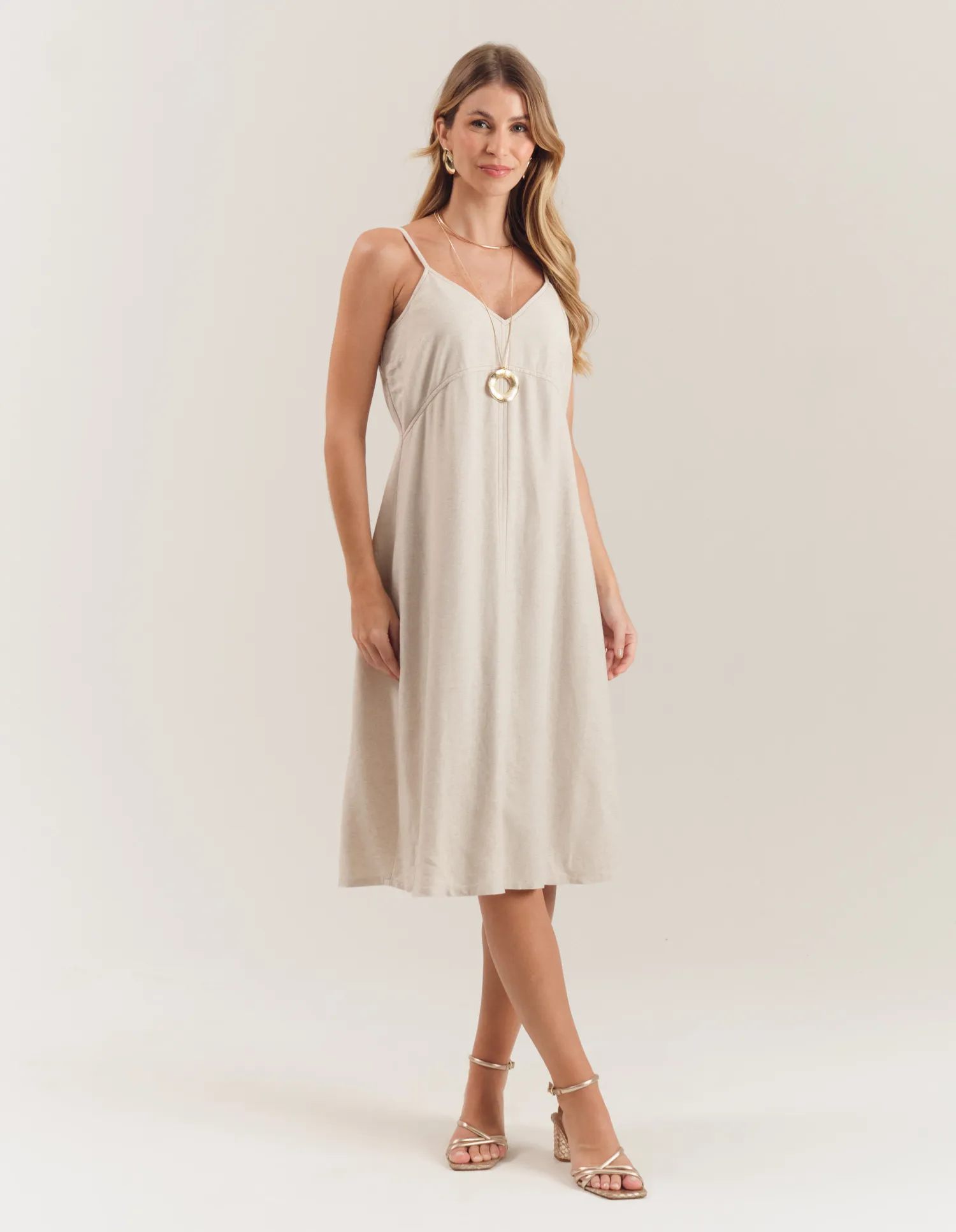 Vestido Midi Pesponto Contrastante - Chino