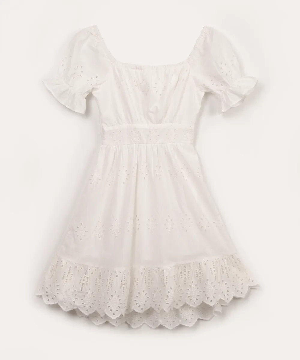 vestido juvenil de laise manga bufante off white