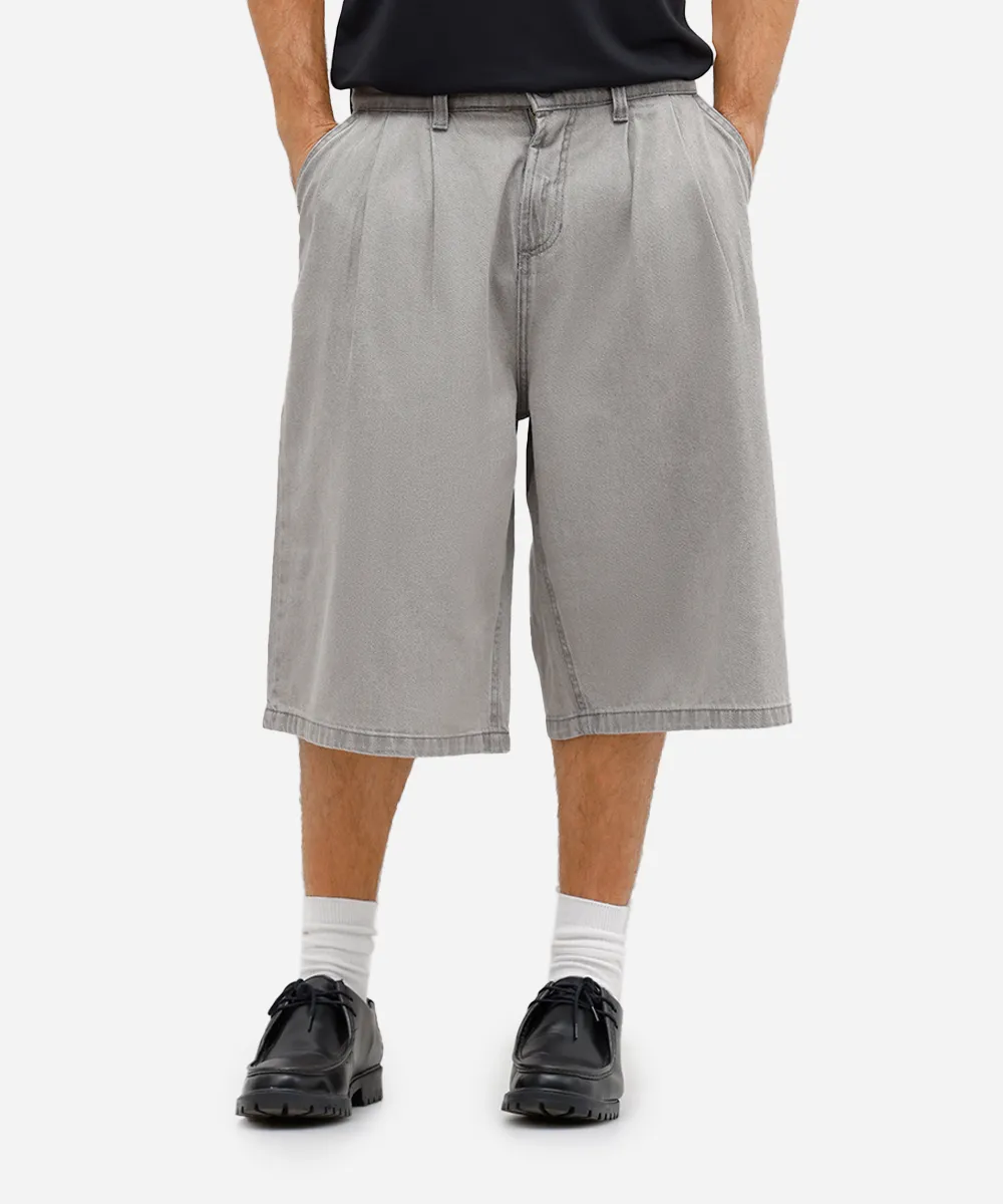 bermuda baggy masculina jeans com pregas cinza