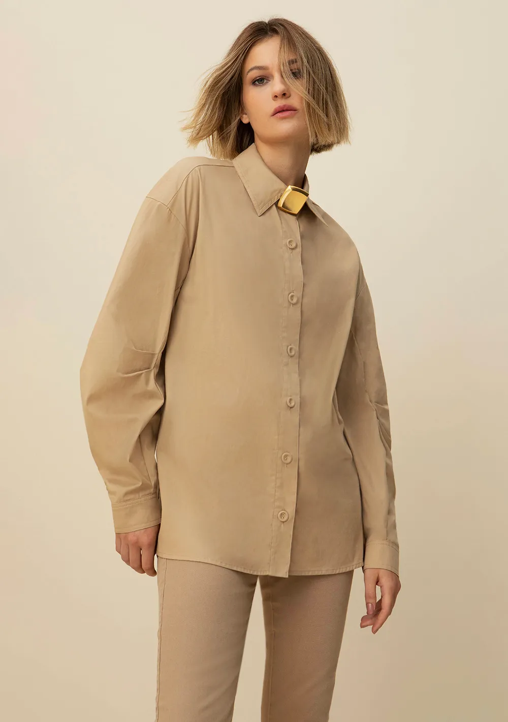 Camisa Morena Rosa Manga Longa Com Amarração Bege