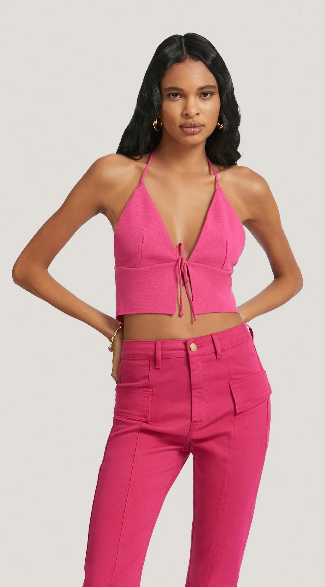 Top Morena Rosa Justo Cavado Com Amarração Pink
