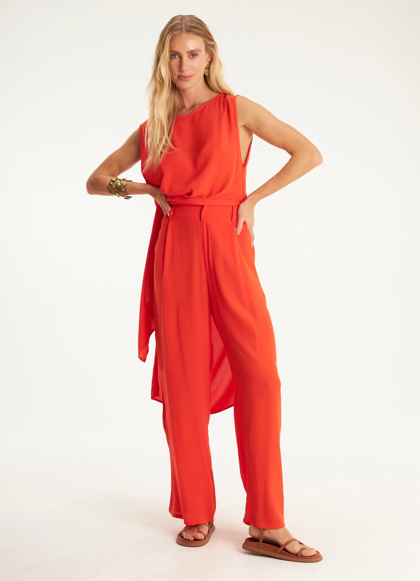 Calça alfaiataria crepe lótus vermelho