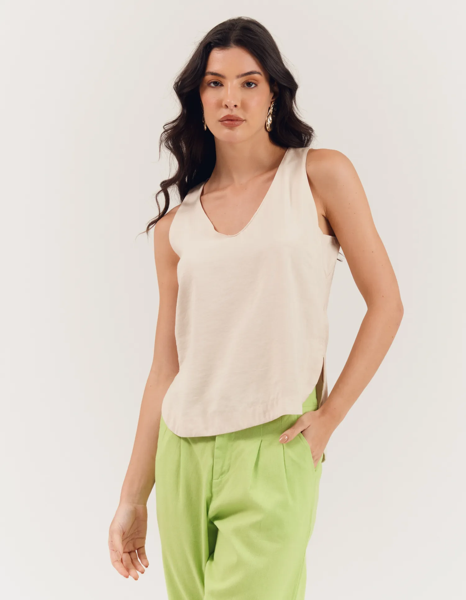 Blusa Sem Manga Fraldada - Areia