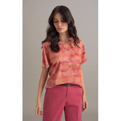 Blusa Manoela Tule Estampa Listra Flor Laranja