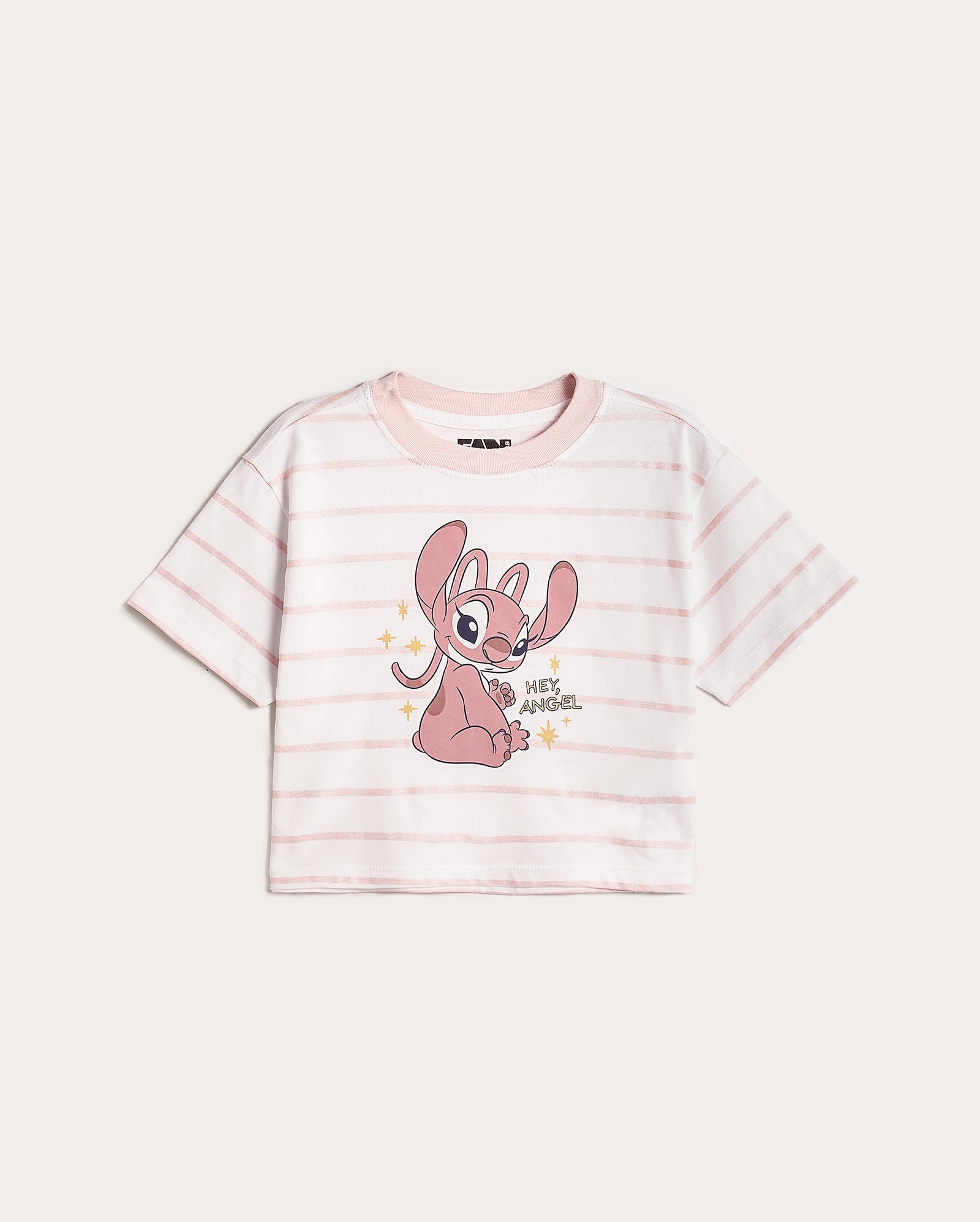 Camiseta infantil boxy listras Stitch Angel 2-8A branca | FANLAB