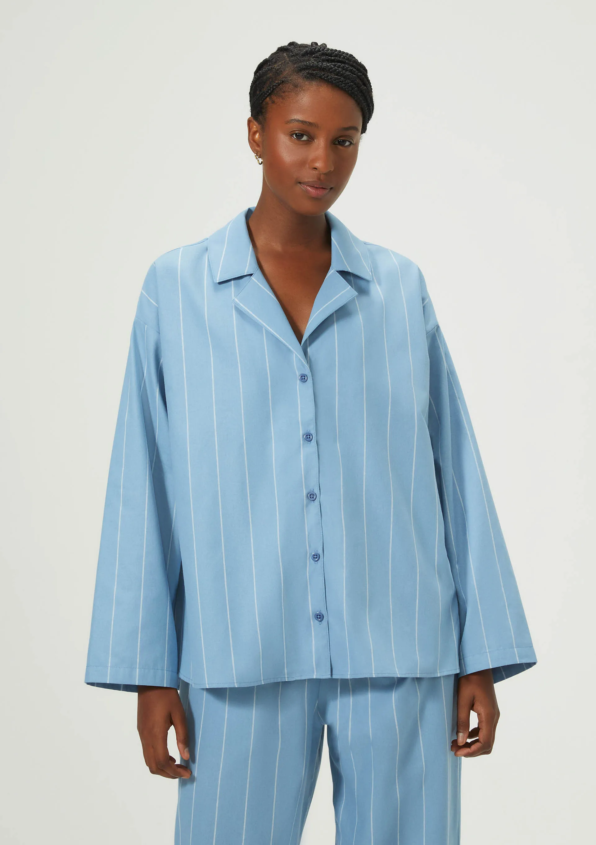 Camisa Feminina Manga Longa Listrada - Azul