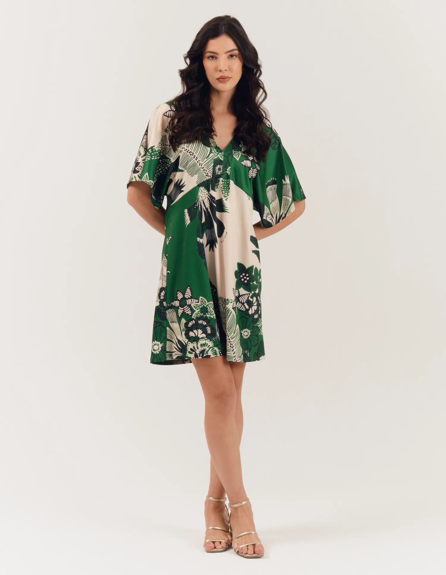 Vestido Curto Estampado Floral Iris - Verde Folha