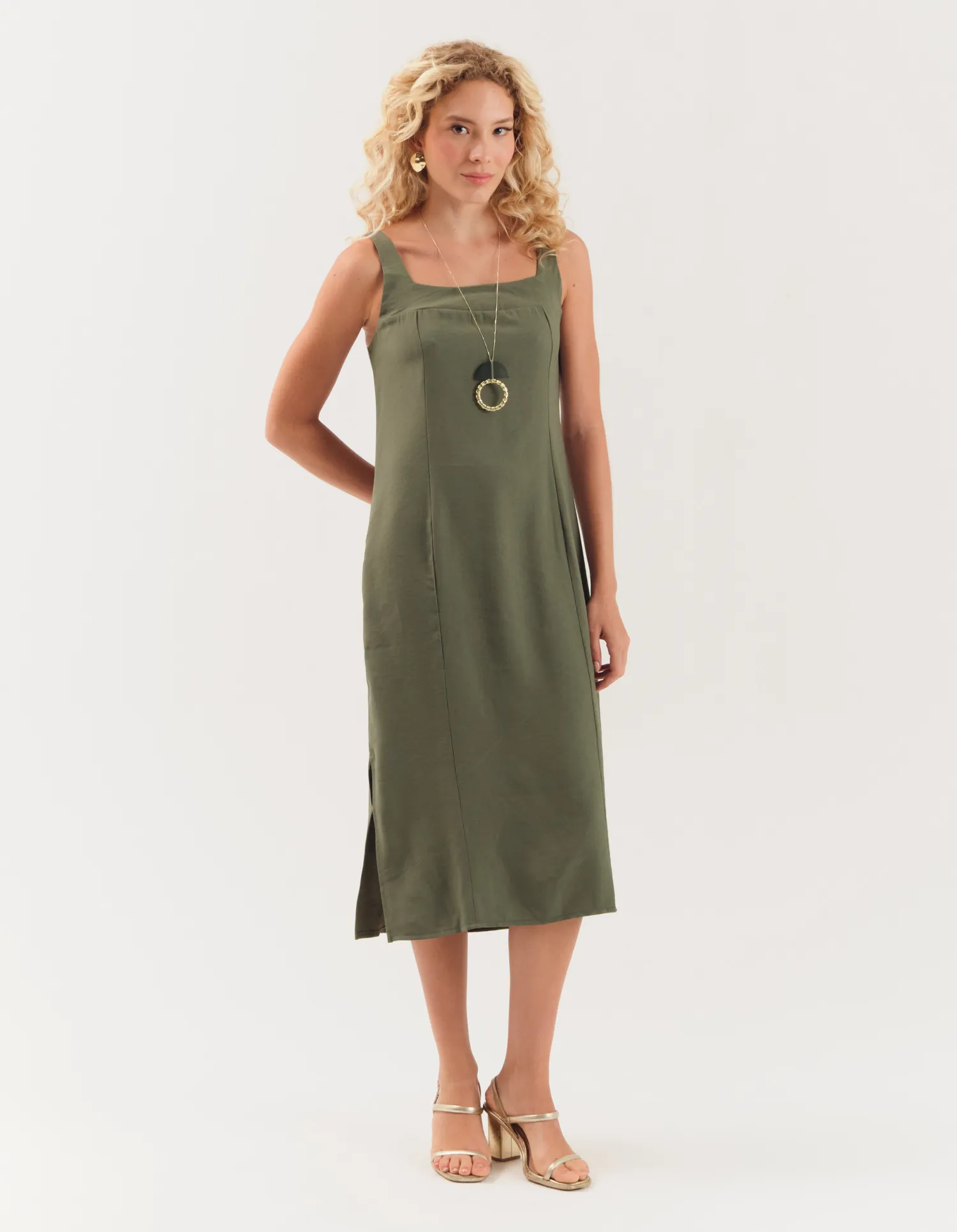 Vestido Midi Alça Larga - Verde Militar