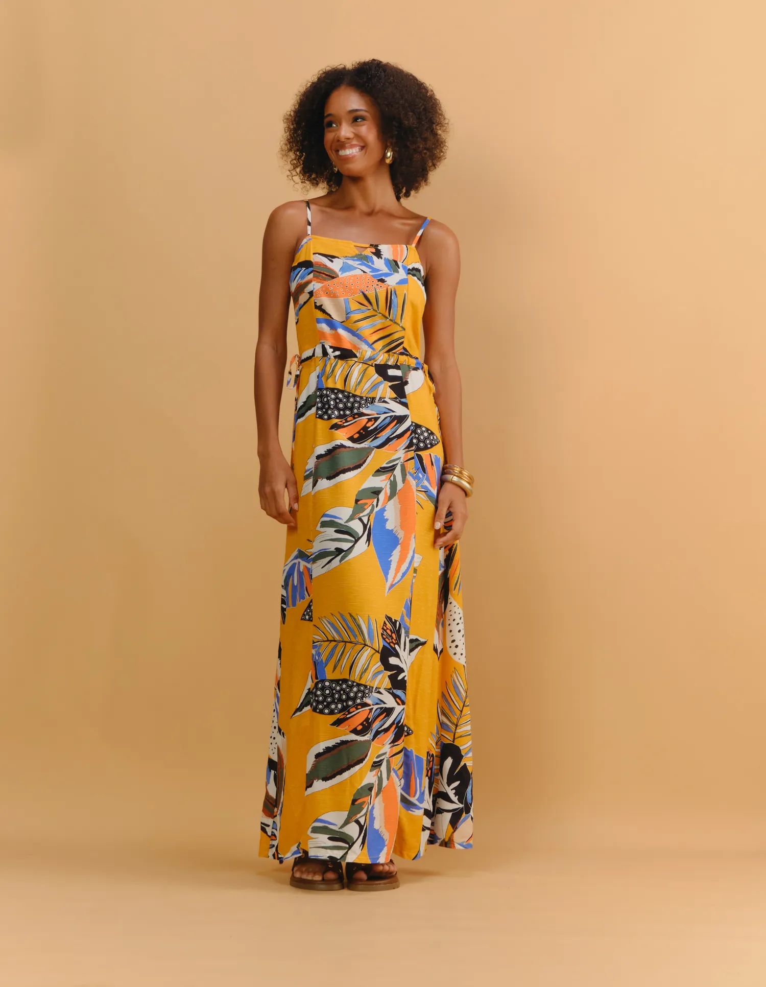 Vestido New Longo Estampado Ieda - Amarelo