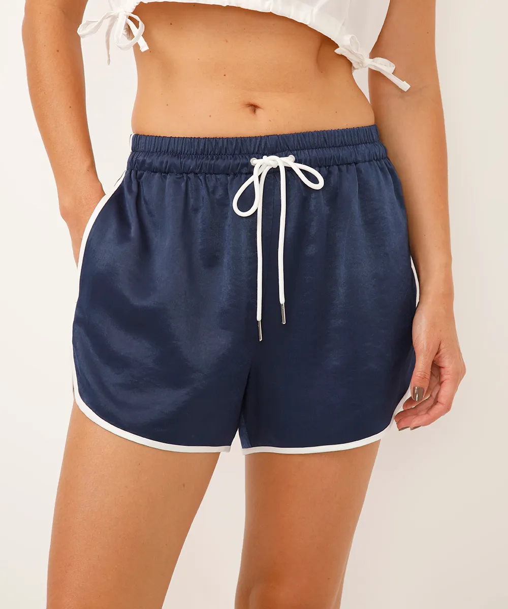 short runner cós com elástico bicolor azul
