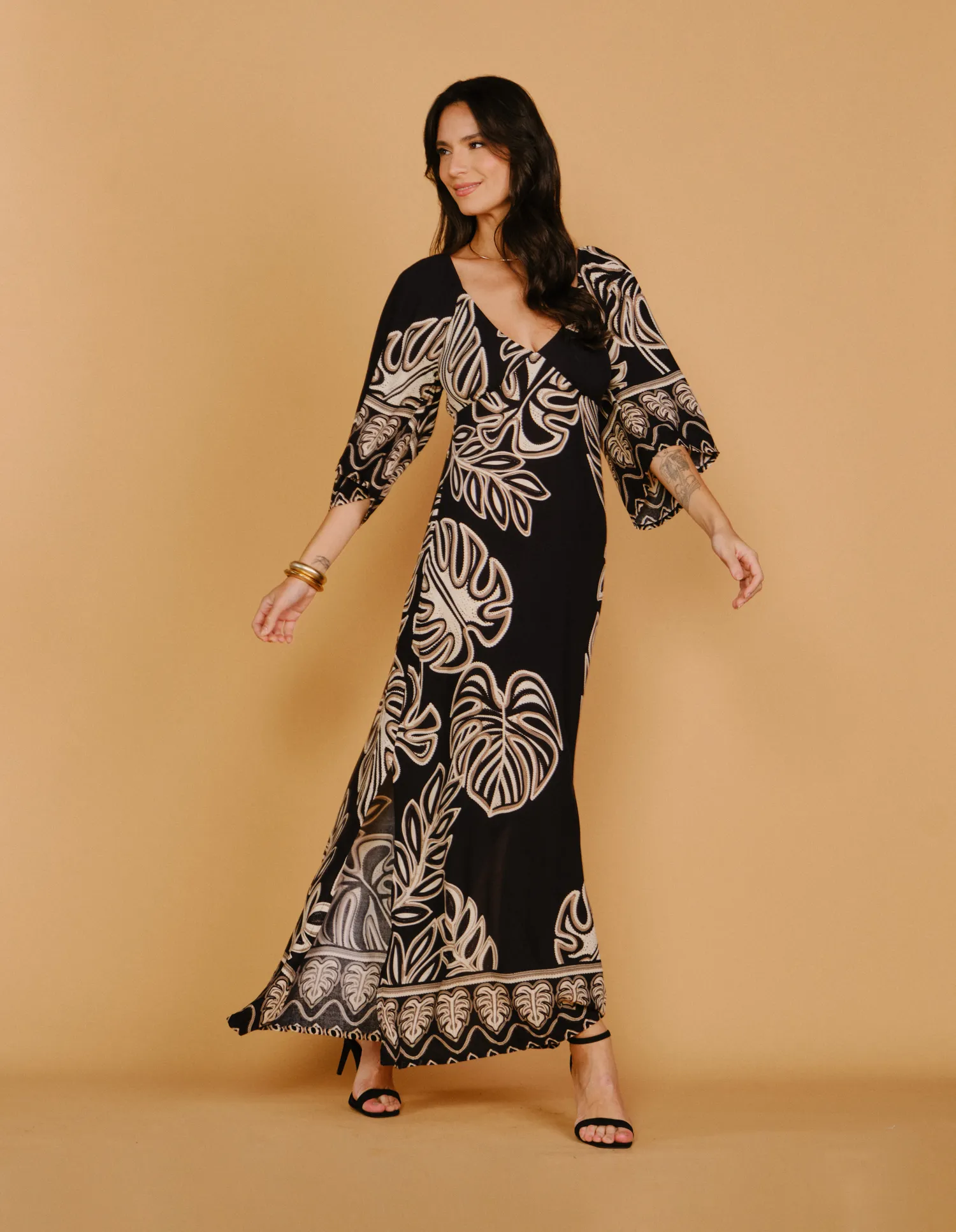 Vestido Longo Estampado Salma - Preto