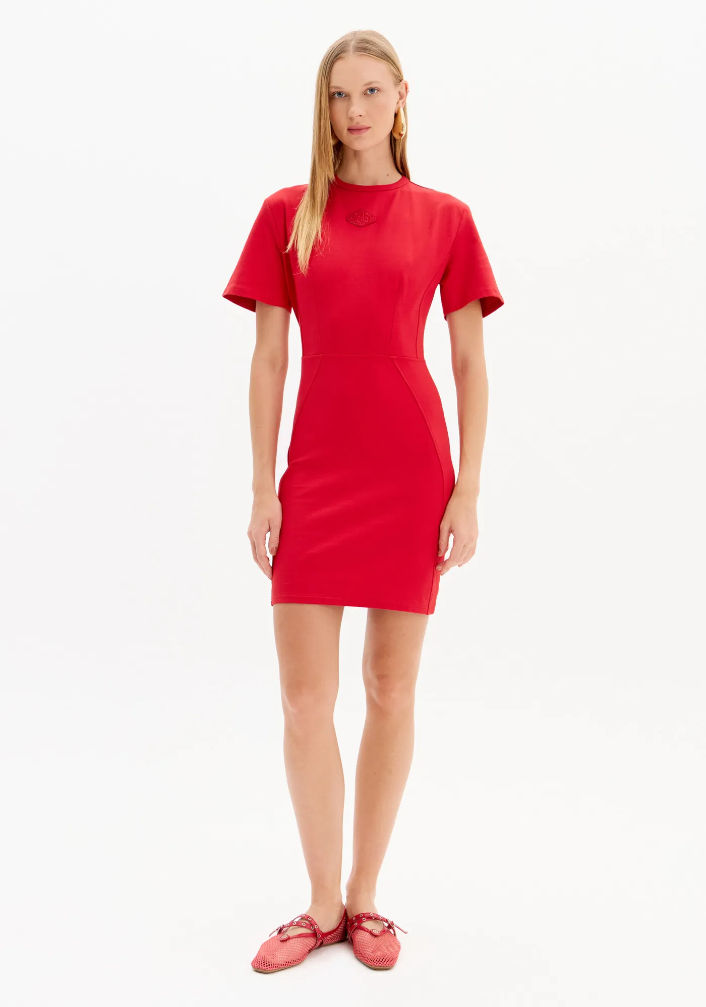 Vestido De Manga Curta Com Gola Redonda