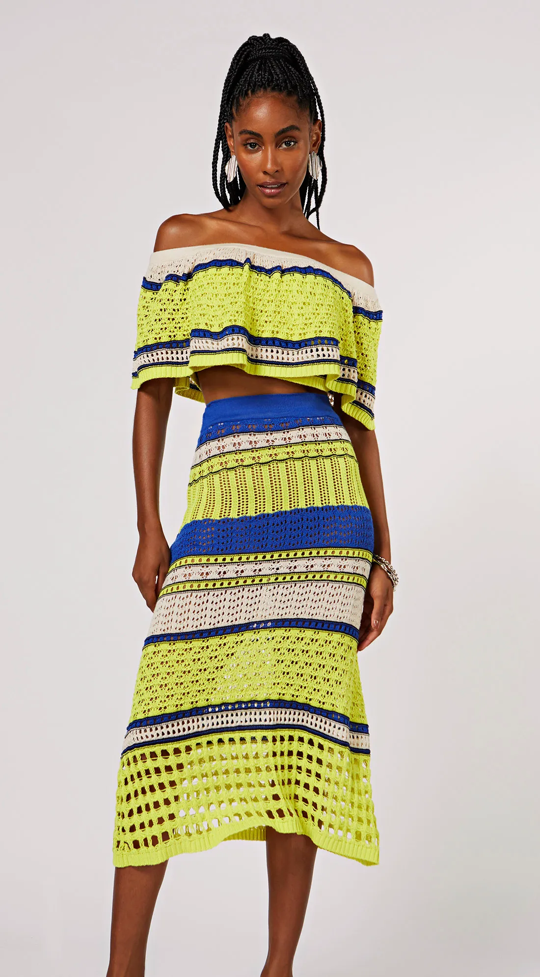 Saia Morena Rosa Midi Reta Tricôt Verde Claro