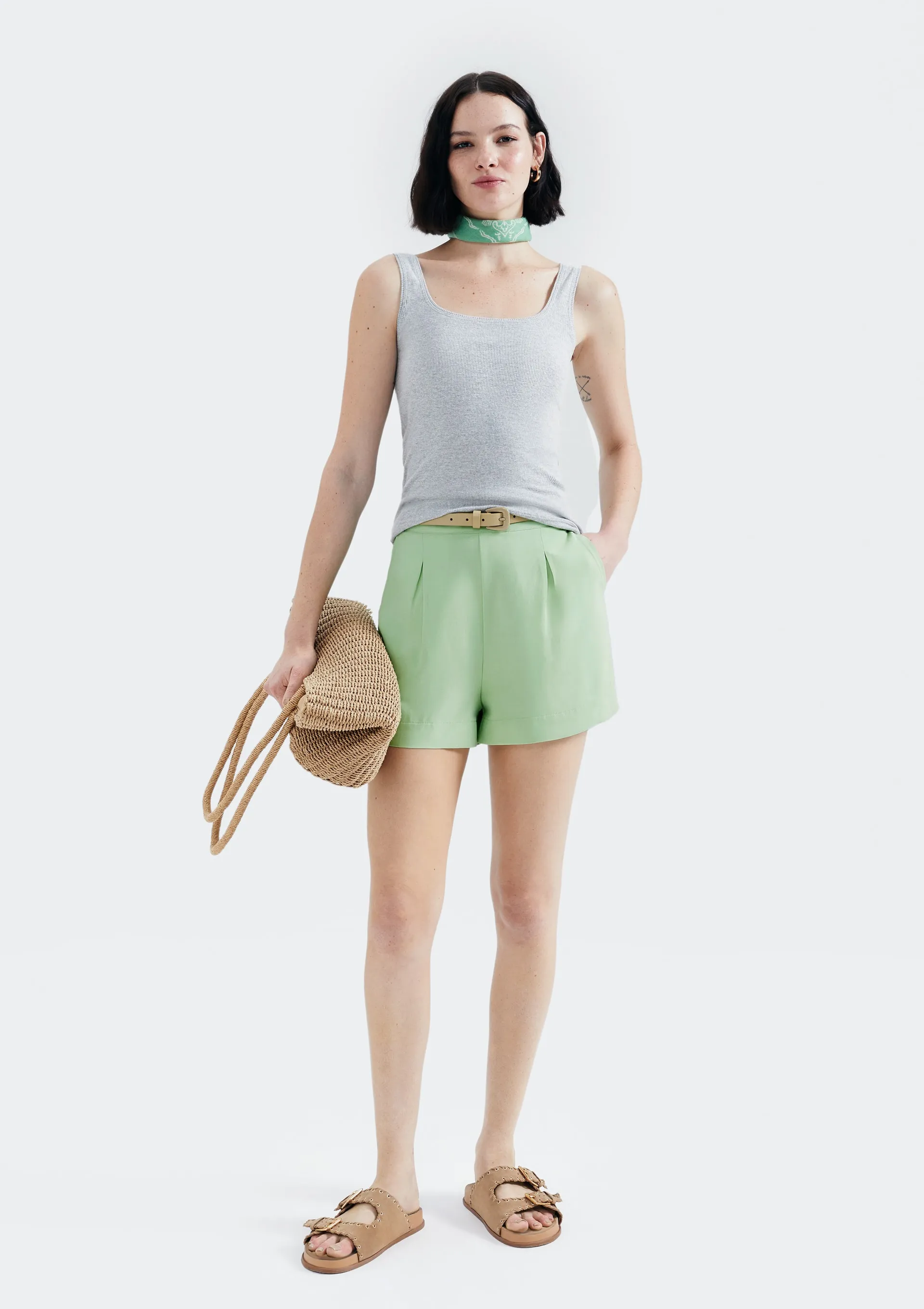 Shorts Feminino Cintura Alta Em Alfaiataria - Verde