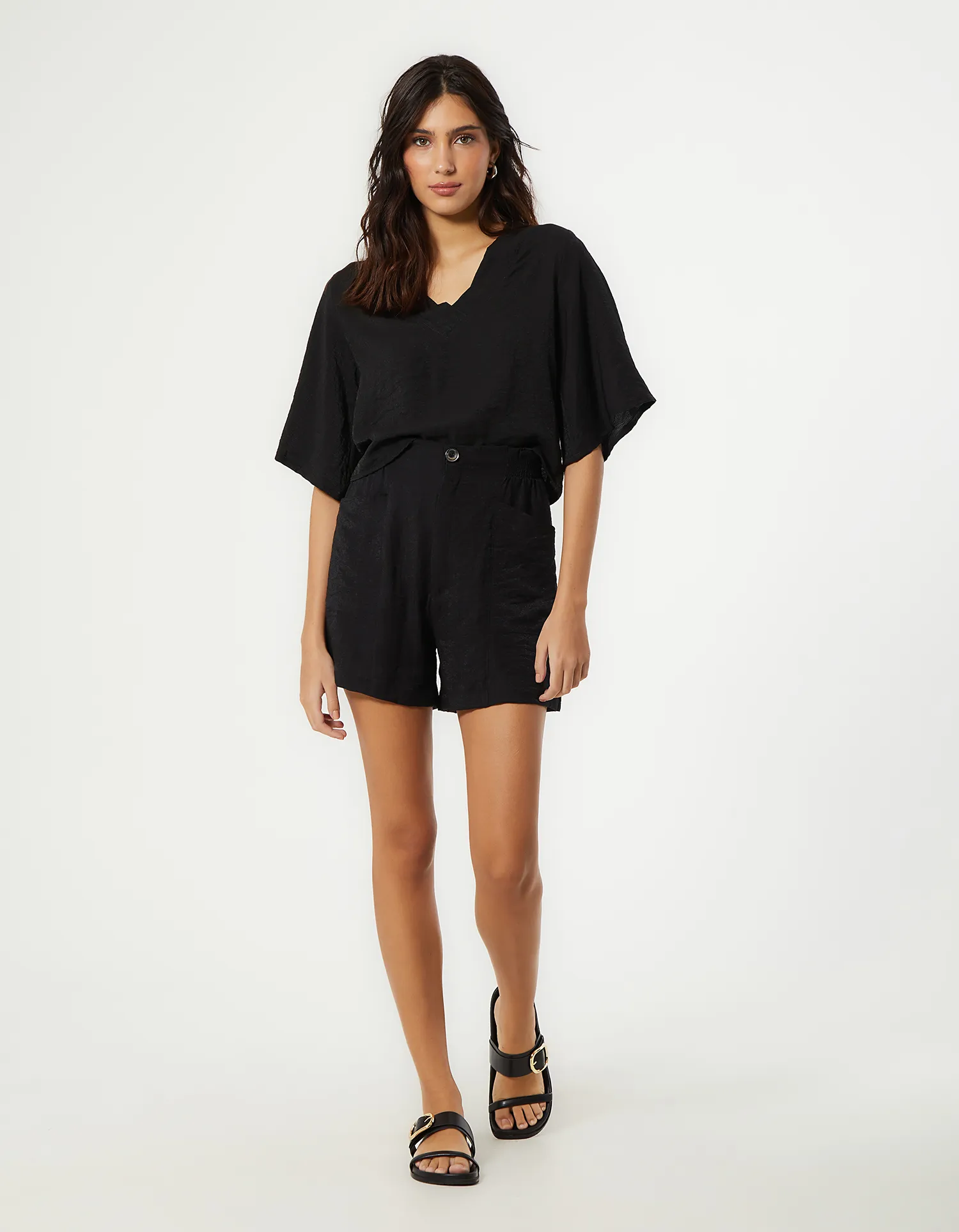 Short Detalhe Cós Elástico Rayon - Preto