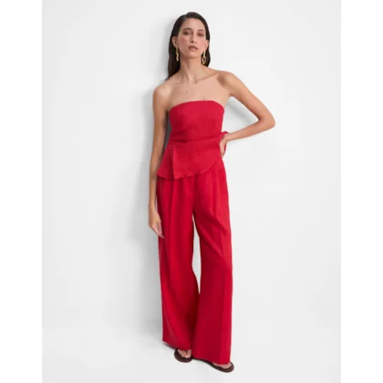 Calça Linho Pantalona Alfaiatada
