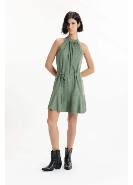 Vestido Jersey Leather Cava Americana Verde Oliva