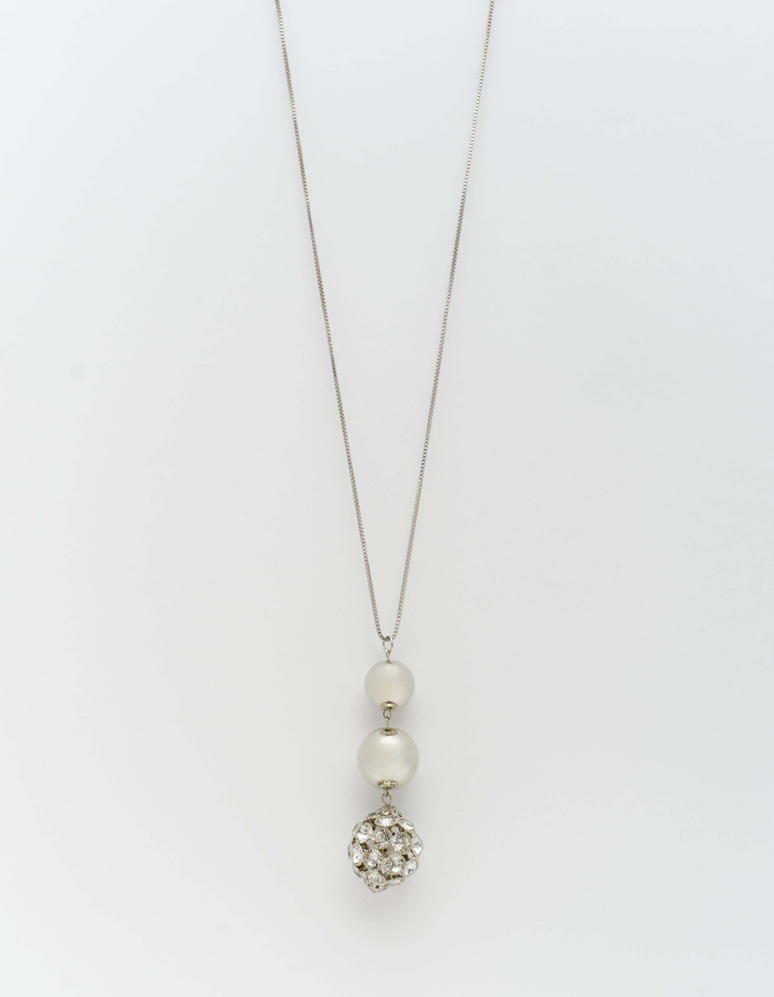 Colar Longo Globo Strass e Bola - Niquel