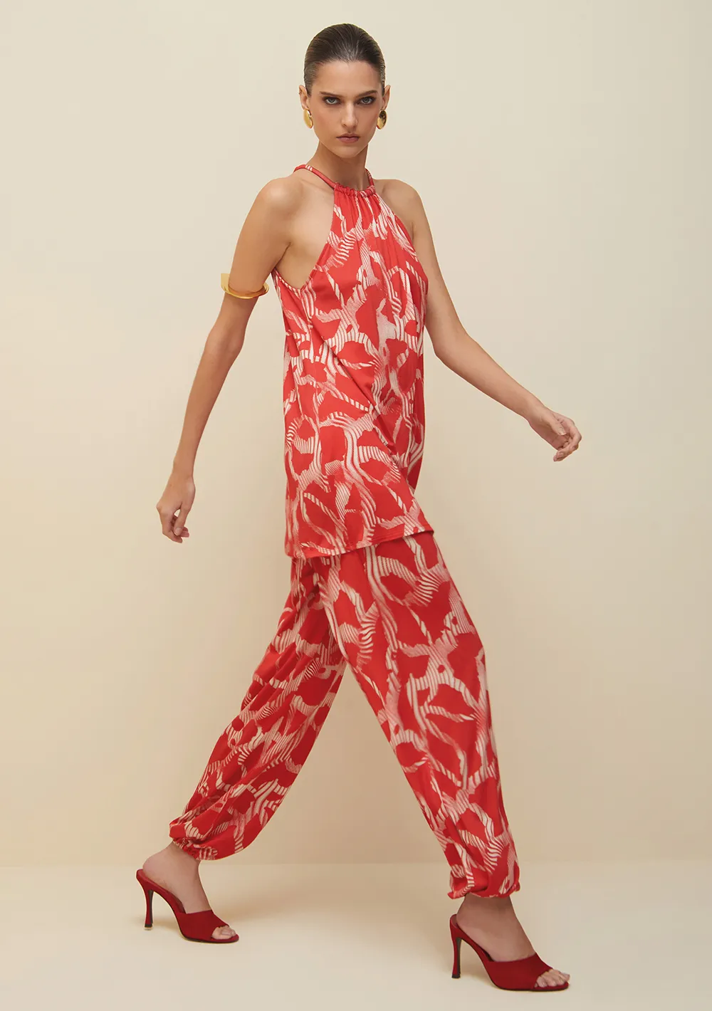 Blusa Morena Rosa Decote Redondo Cava Francesa Abertura Costas Vermelho