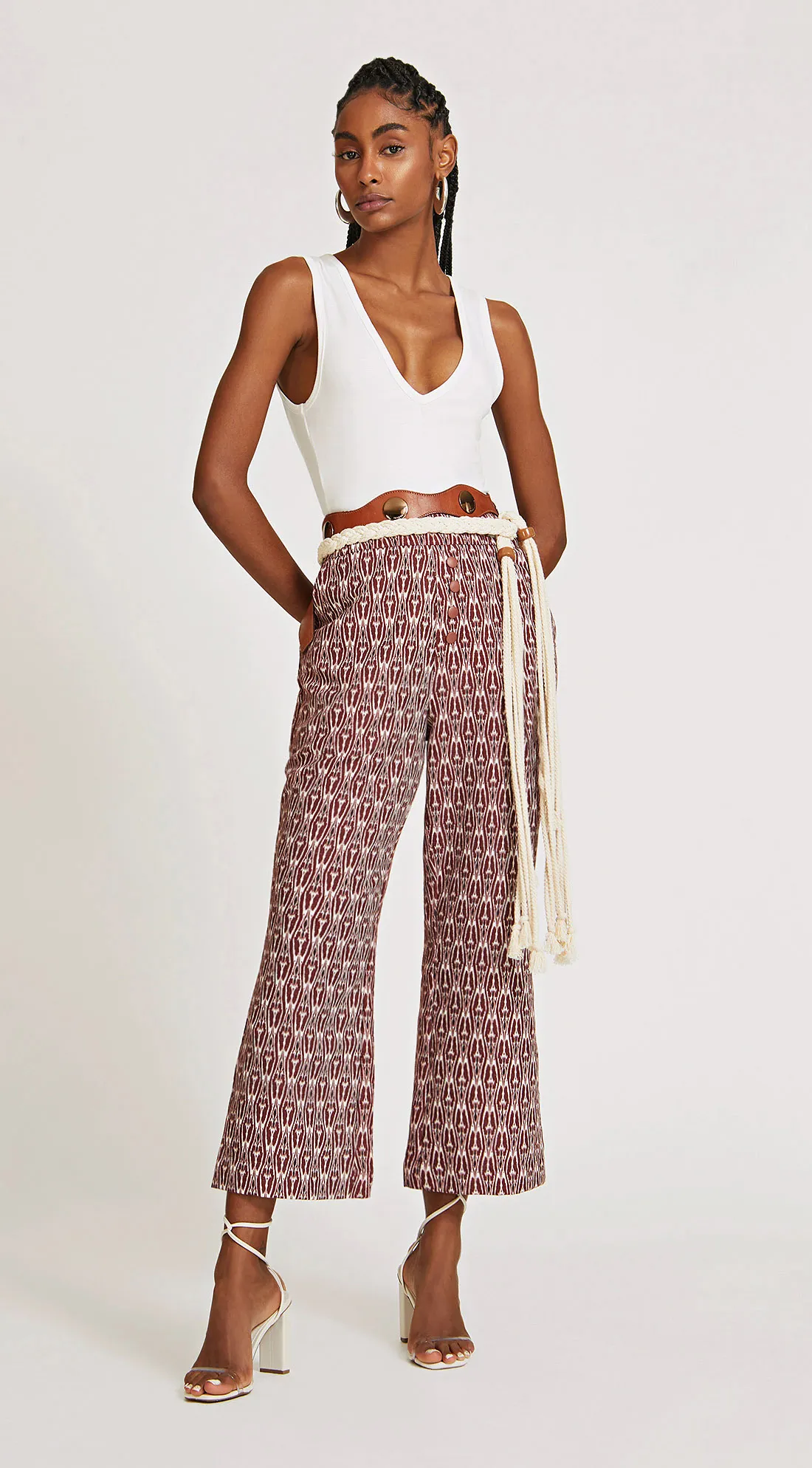 Calca Morena Rosa Reta Cós Alto Com Recorte Marrom