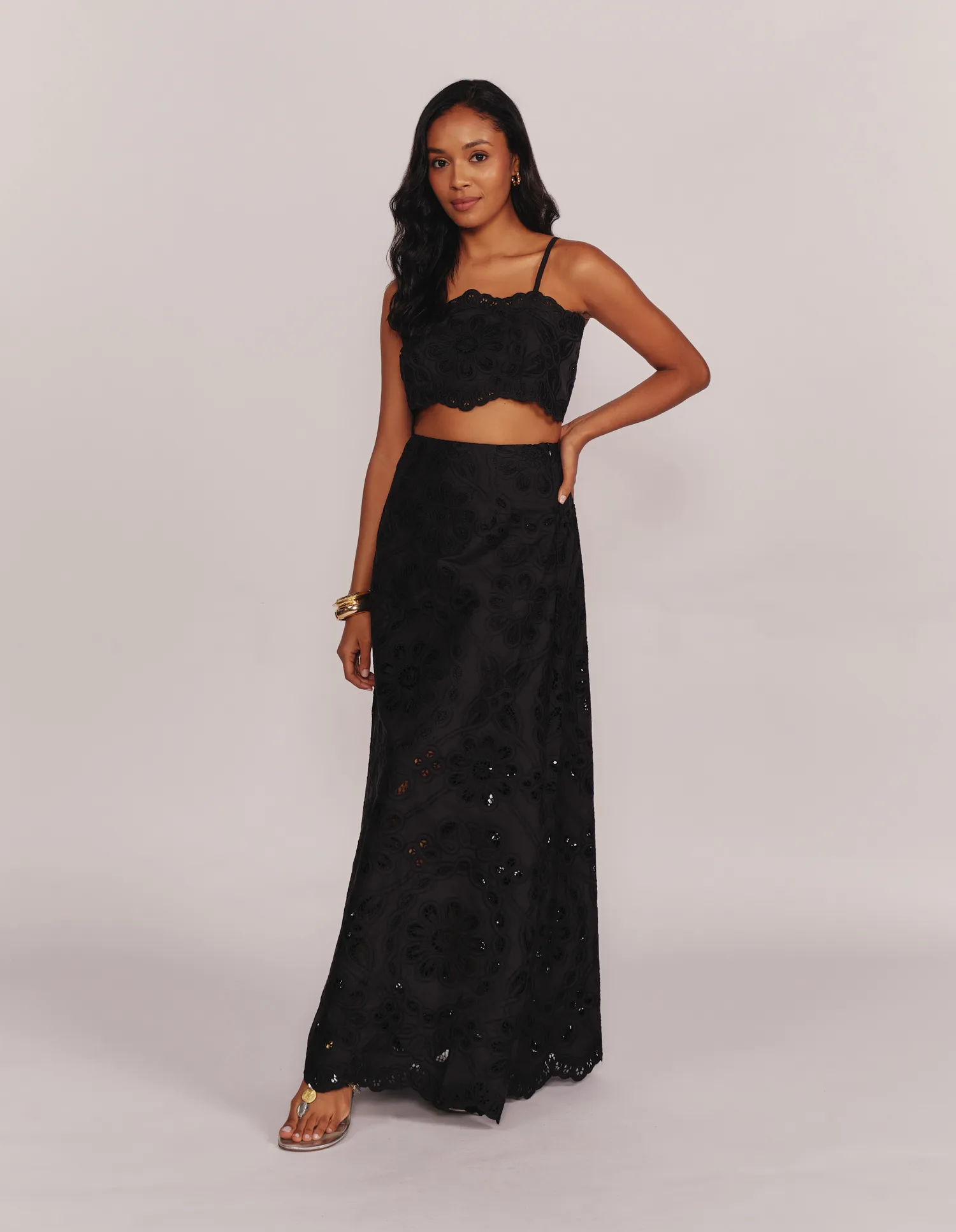 Saia Midi Laise Flores - Preto