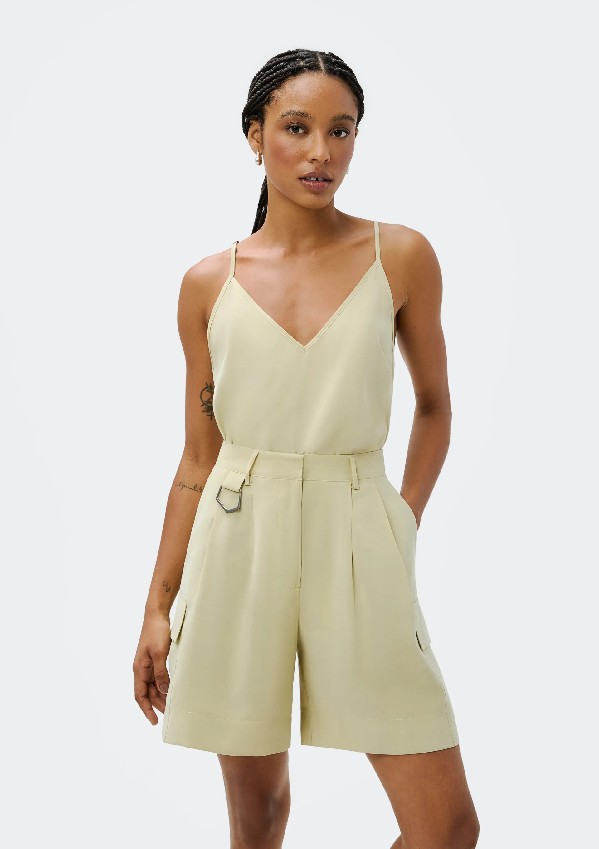 Shorts Feminino Cargo Em Alfaiataria - Verde